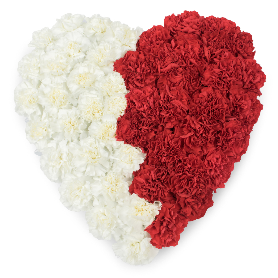 Introducing our elegant Heart-Shaped Carnations bouquet, skillfully arranged by Handy Flowers. This beautiful arrangement features a blend of white and red carnations, making it an ideal choice for expressing heartfelt sympathy.